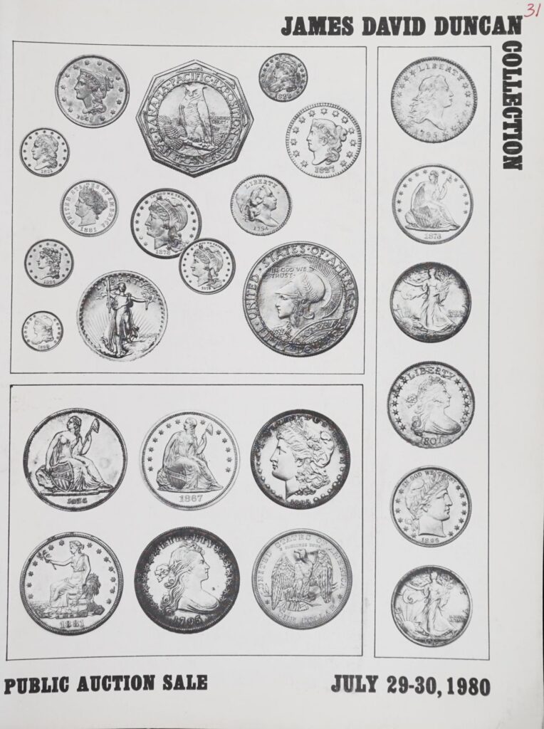 - NASCA 7/1980 was titled as “James David Duncan Collection of U.S. Coins and Other Important Properties”. However, there is no biography of James David Duncan included, and no notations of which coins were of other properties.